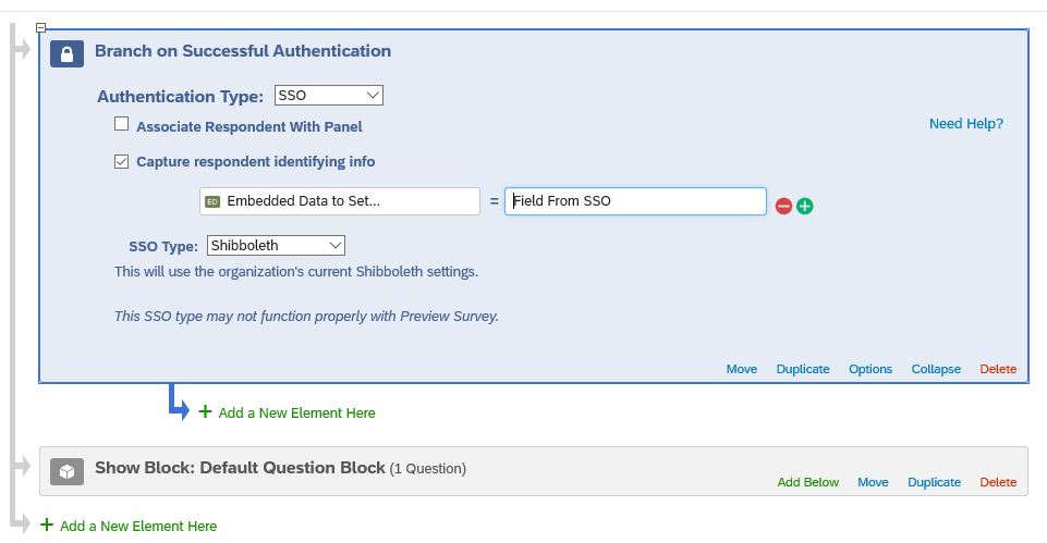 In some surveys, you may want to require respondents to log in using the university’s single sign-on (SSO) to take a survey or to capture information about them, such as name or email address.